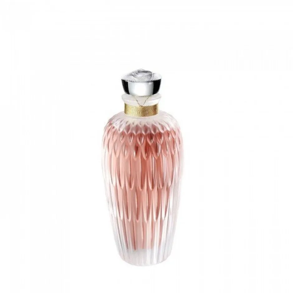 Édition limitée, Création Lalique, floral, musqué, un flacon très féminin, dans un rose profond, sublimé par le cristal.