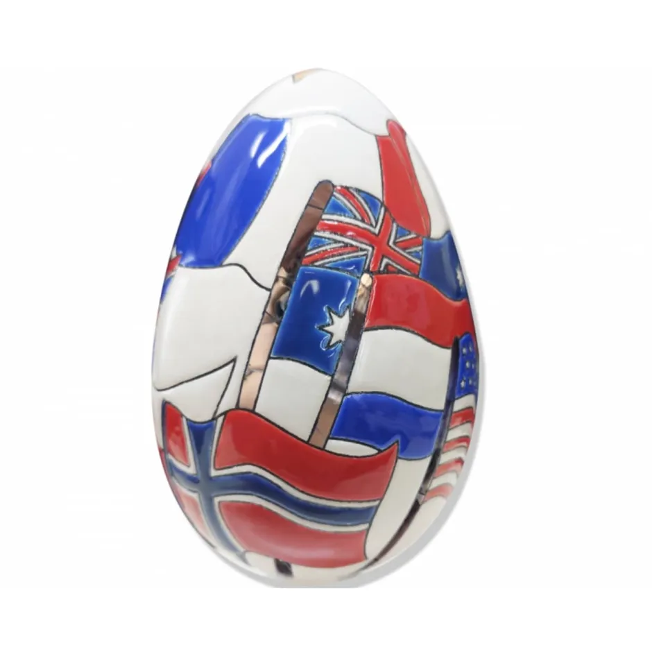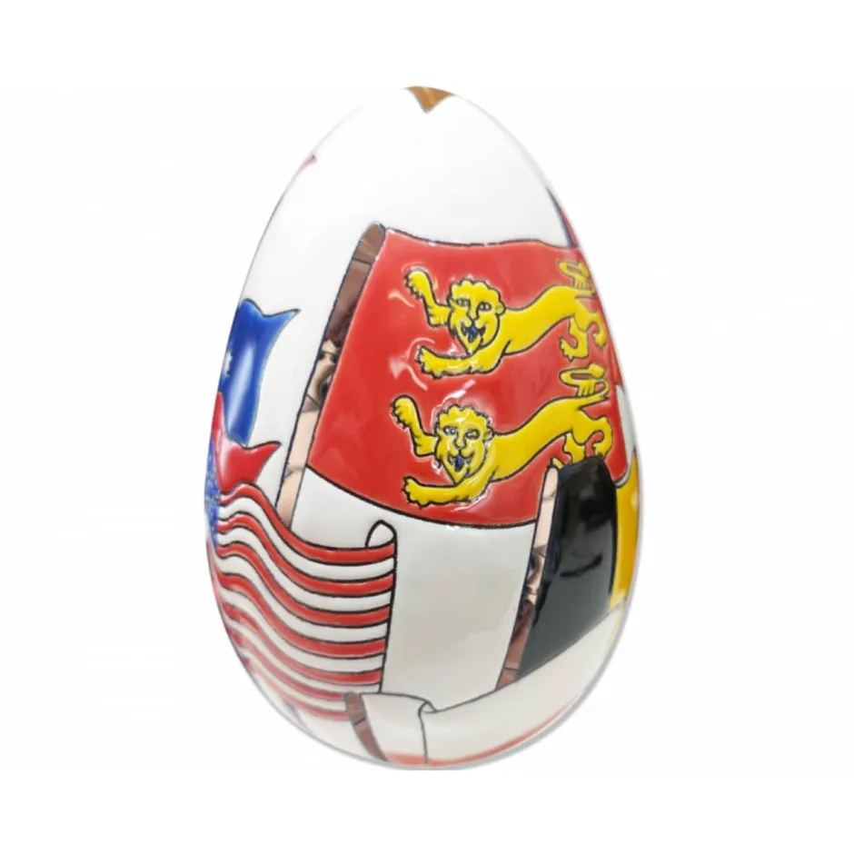Notre précieux œuf s’orne des drapeaux des alliées dont les troupes ont participé au jour le plus long associé à l’oriflamme normand.
