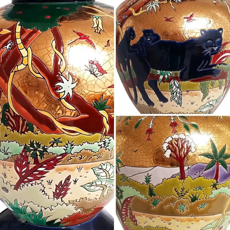 - Lampe Cyclade les Panthères signée Émaux de Longwy