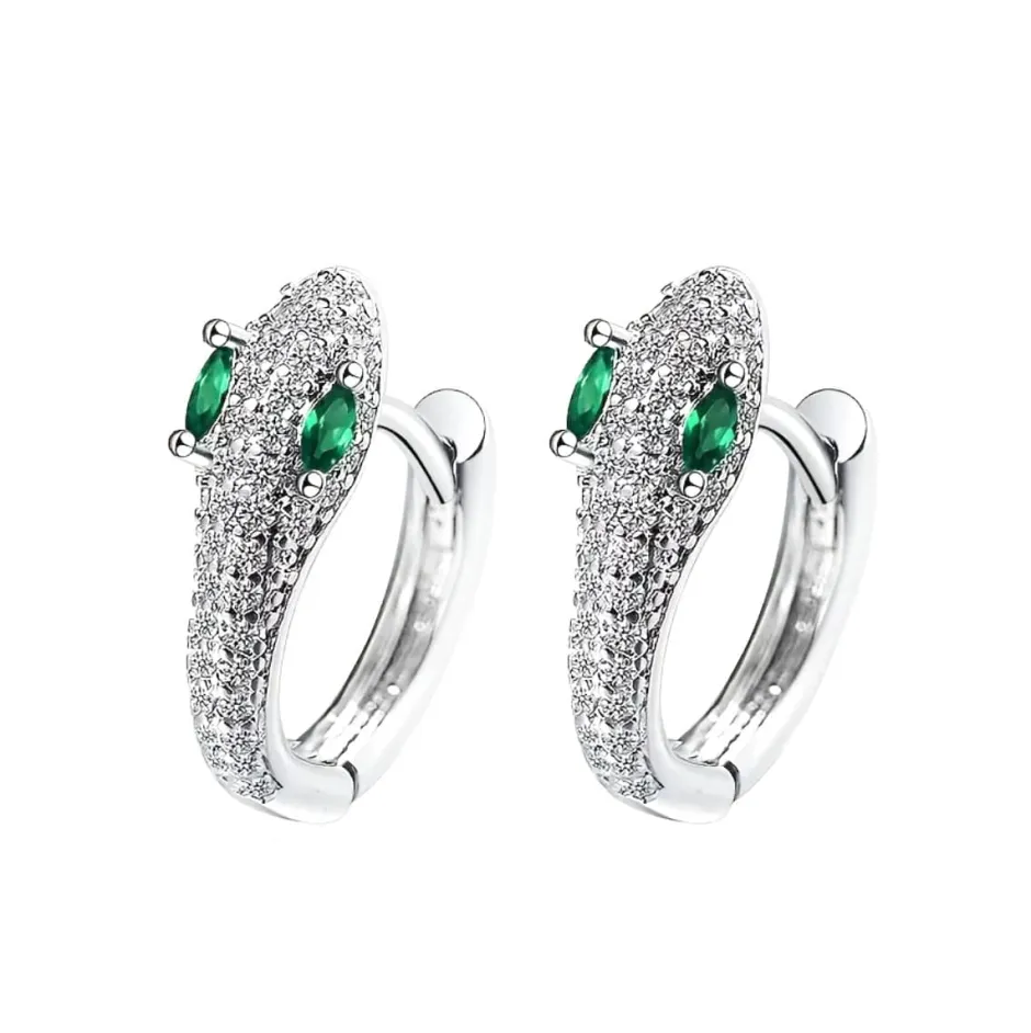 Ces boucles d’oreilles en forme de serpent s’enroulent avec grâce pour encadrer le visage d’une touche de mystère. Serties de cristaux scintillants et ponctuées par des yeux en émeraude hypnotique, elles incarnent un luxe discret. Parfaites pour les occasions spéciales ou comme éclat quotidien, elles ajoutent une touche d’audace à n’importe quel ensemble.