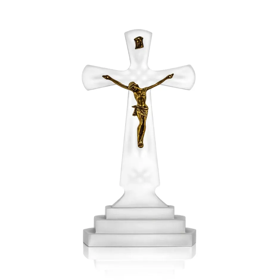 Symbole de foi et de lumière, ce crucifix en cristal de Bohême unit la pureté du verre à la solennité du Christ en métal doré. Chaque détail, façonné avec dévotion, reflète un savoir-faire sacré et intemporel. Une pièce spirituelle d’une grande noblesse, idéale pour un autel ou un lieu de recueillement.