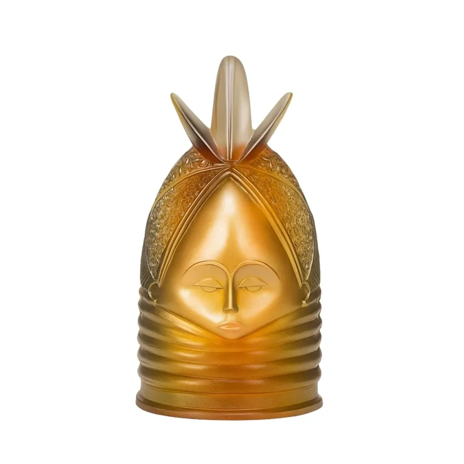 Ce Masque Sierra Leone signé Daum dévoile l’éclat d’un cristal ambré, hommage vibrant aux arts premiers et aux chefs-d’œuvre du musée du Quai Branly. Une pièce rare, où la pâte de cristal devient mémoire vivante des cultures du monde.