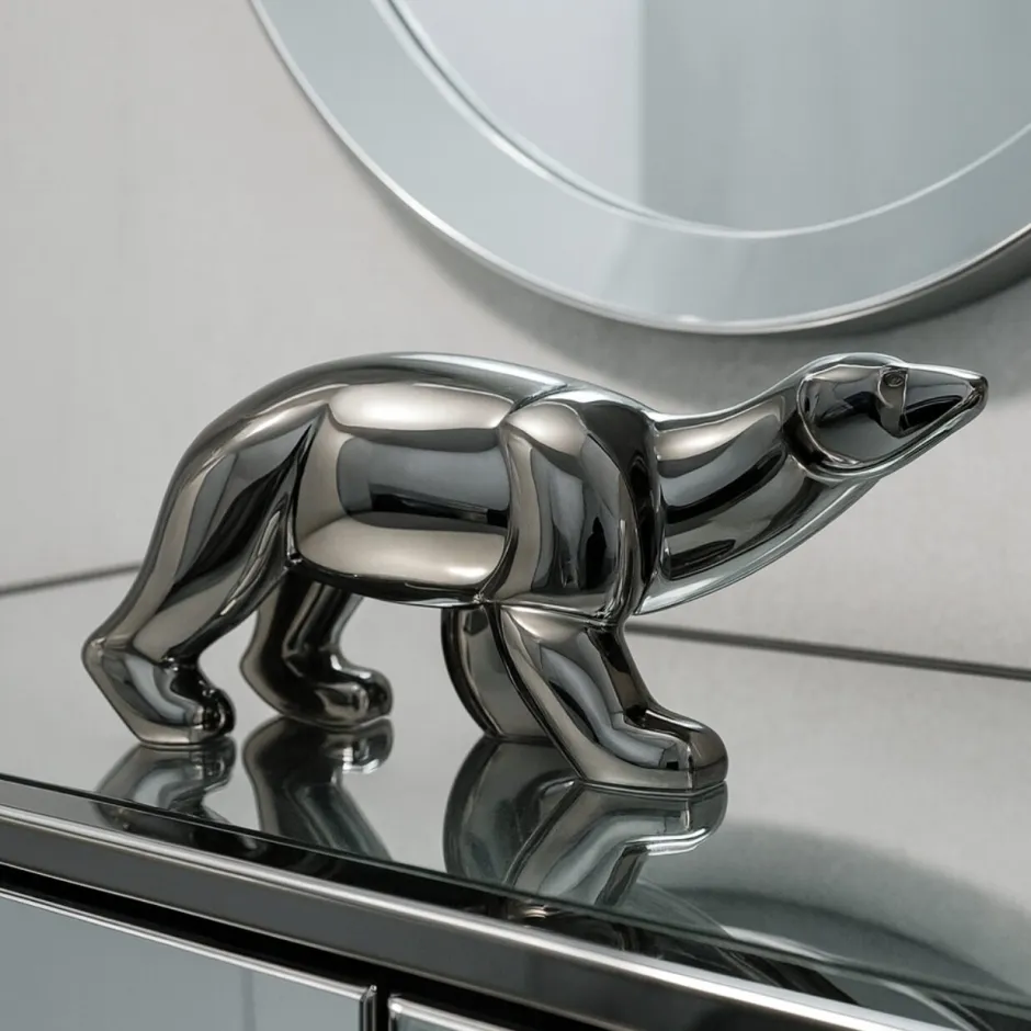 Icône du bestiaire Art déco, cet ours polaire aux lignes tendues et puissantes se pare d’un éclat métallisé somptueux. Sa silhouette, toute en fluidité et en force contenue, magnifie le geste de l’artiste et le savoir-faire des ateliers qui l’ont vu naître.