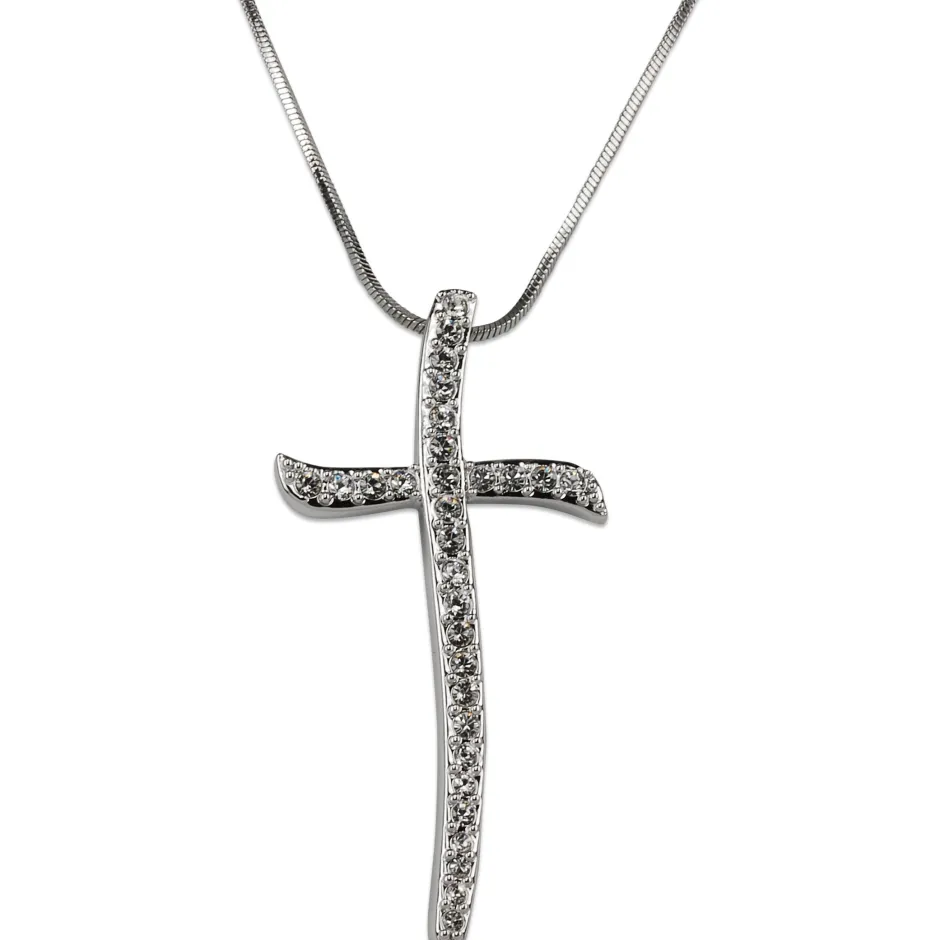 Pendentif croix grand modèle en cristal et argent rodhié. Chaine de 40 cm réglable