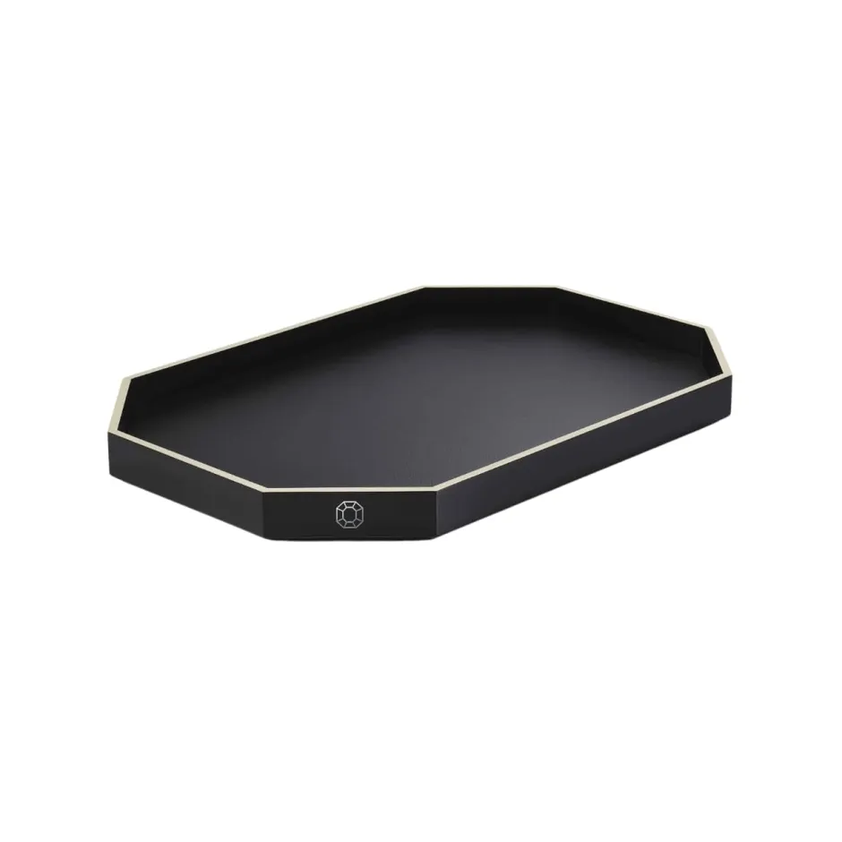 Le plateau Octogone est une création laquée disponible en trois tailles. Inspirée par la pampille octogonale rouge, signature emblématique de Baccarat, une série d’accessoires en laque raffinée vient agrandir la collection Octogone. Le plateau est méticuleusement confectionné à la main grâce à un savoir-faire ancestral. Sa surface brillante capte la lumière et met en valeur les pièces en cristal de la Maison.