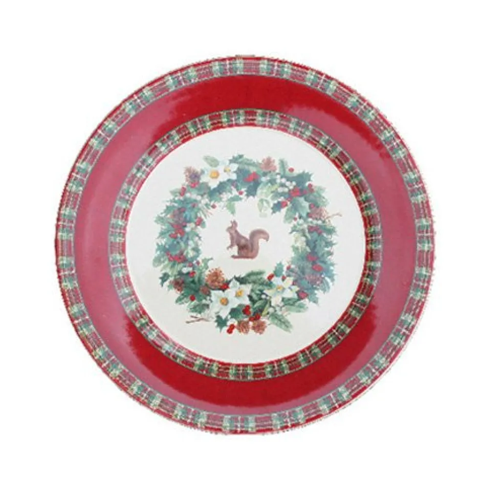 Assiette dessert de la collection Roses des Neige. Une collection hivernale, sublimée par un rouge bordeaux. La collection parfaite pour créer une ambiance chaude, chaleureuse, et de fête.