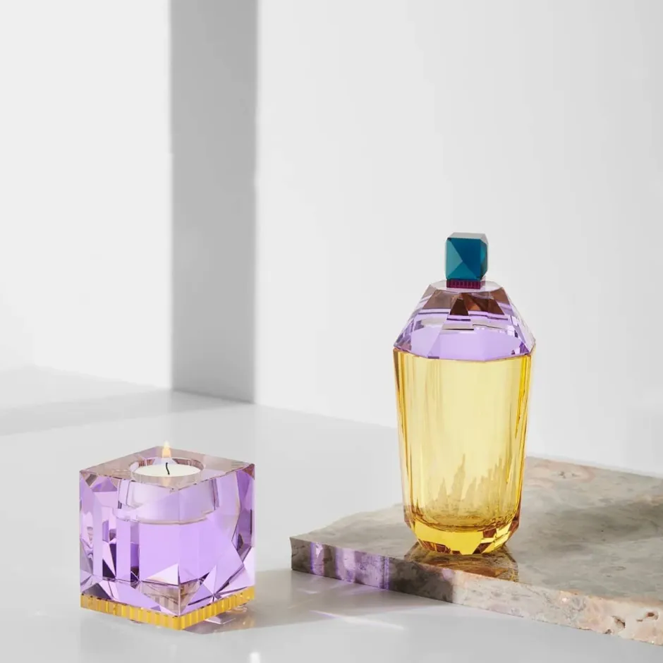 Reflections Copenhagen’s opulent yellow Long Island bonbonniere takes inspiration from the ornate French Boudoir interiors and the sleek, sophisticated style of The Hamptons. It is crafted from fine hand-cut crystal and has a stopper that detaches for refilling and the top of the rim is shaped with eight ridges that run down to a narrow base. Use it as the decorative focal point on a dressing table or place it on one of Reflections Copenhagens beautiful trays.