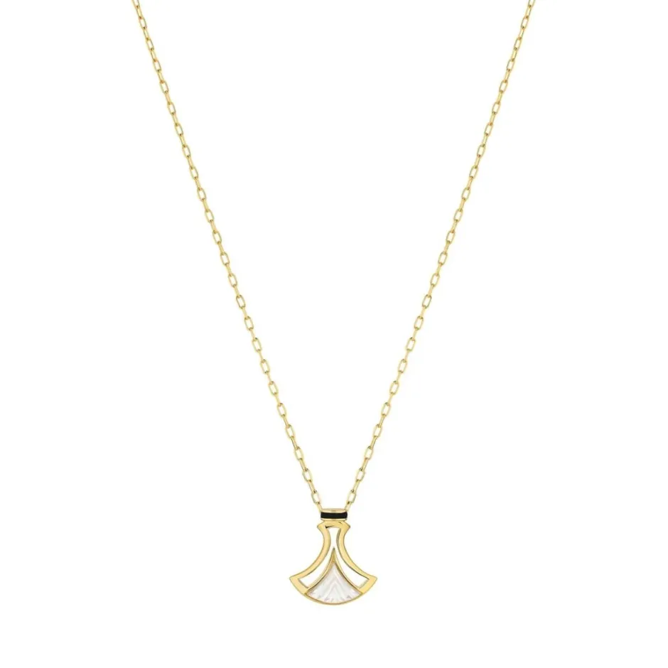 Le cristal subtilement sculpté de stries fait rayonner ce délicat collier. La silhouette géométrique de sa monture ajourée rappelle des structures architecturales en arcade mêlant métal et verre. L’intemporel cristal incolore paré d’or lumineux, ou l’argent serti d’un cristal violet crépuscule, sont soulignés d’une fine bande de laque noire dans l’inspiration Art déco.