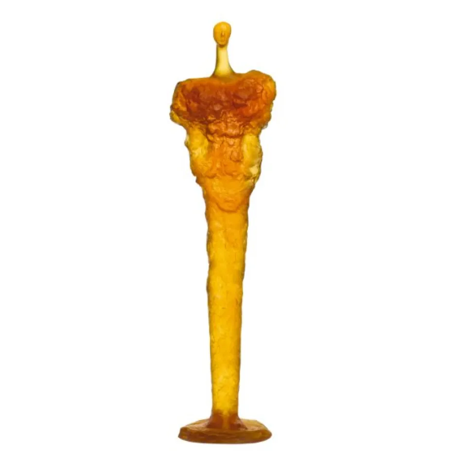 Pour Daum, Louis Derbré transpose en pâte de cristal cette dame qui veille sur nous. Cette sculpture longiligne offre à la fois la bienveillance et la générosité d’une mère pour l’humanité toute entière.