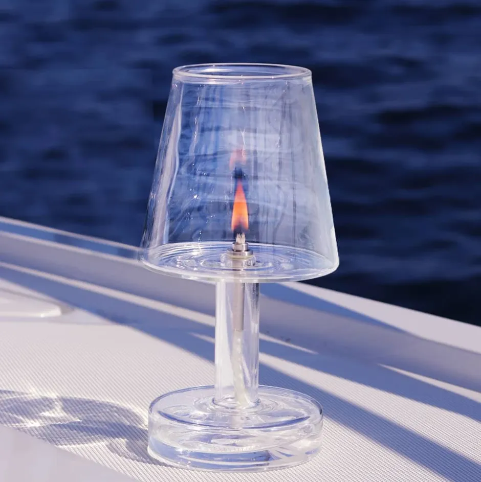 Ce nouveau modèle se compose de deux parties, le pied qui contient la mèche en fibre de verre et le photophore qui permet de protéger la flamme du vent.