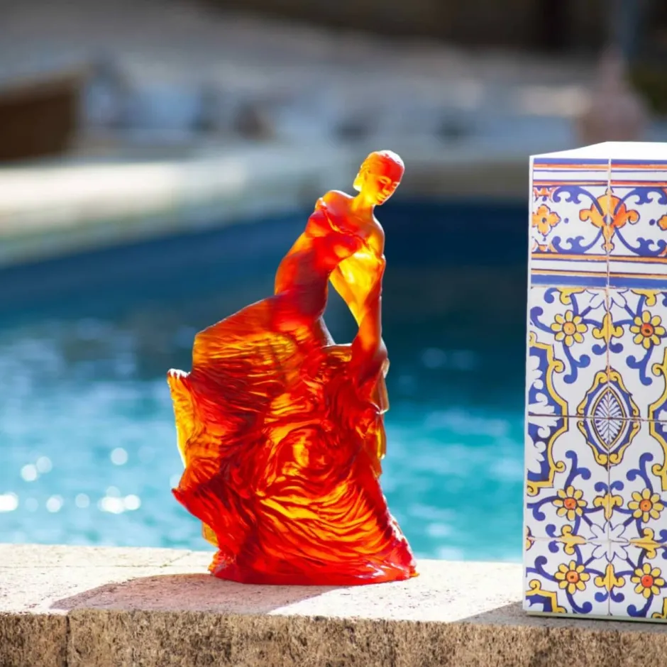 Cette pièce a nécessité au total 330 heures de développement et les couleurs ont été choisies spécifiquement pour mettre en valeur tous ses détails minutieux. Un incroyable savoir-faire technique du drapé du tissu, l’une des principales caractéristiques des œuvres de l’artiste, parfaitement retranscrit en pâte de cristal par les artisans de Daum.