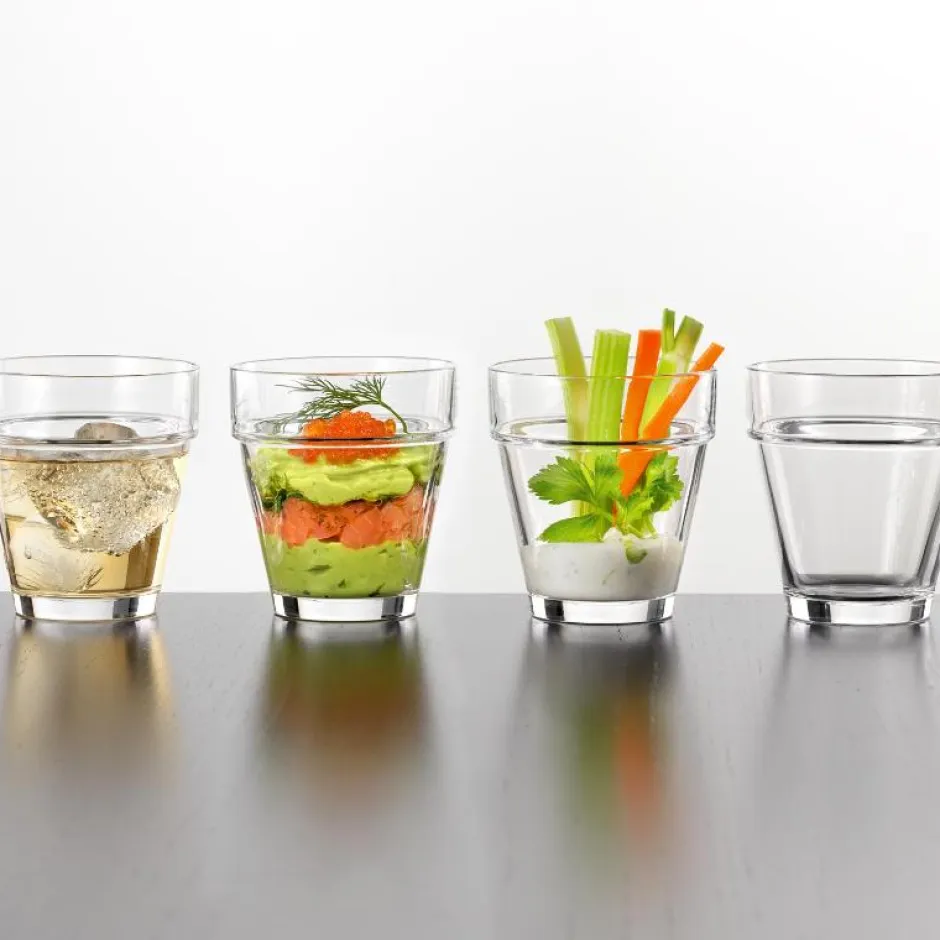 Bistro s’inscrit dans un élan de modernité et de simplicité. Robuste et fiable, la série est fonctionnelle et polyvalente. Elle se décline en tant que service de verre, mais aussi en tant que vaisselle culinaire. Pour vos verrines, salades d’été, tartares, mais également pour le café, thé, jus de fruit …