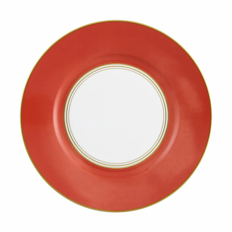 Élégante et intemporelle, cette assiette plate de 27 cm révèle toute la richesse chromatique de la collection Cristobal. Sa bordure d’un corail intense, subtilement soulignée d’un filet or, apporte caractère et distinction à votre table.