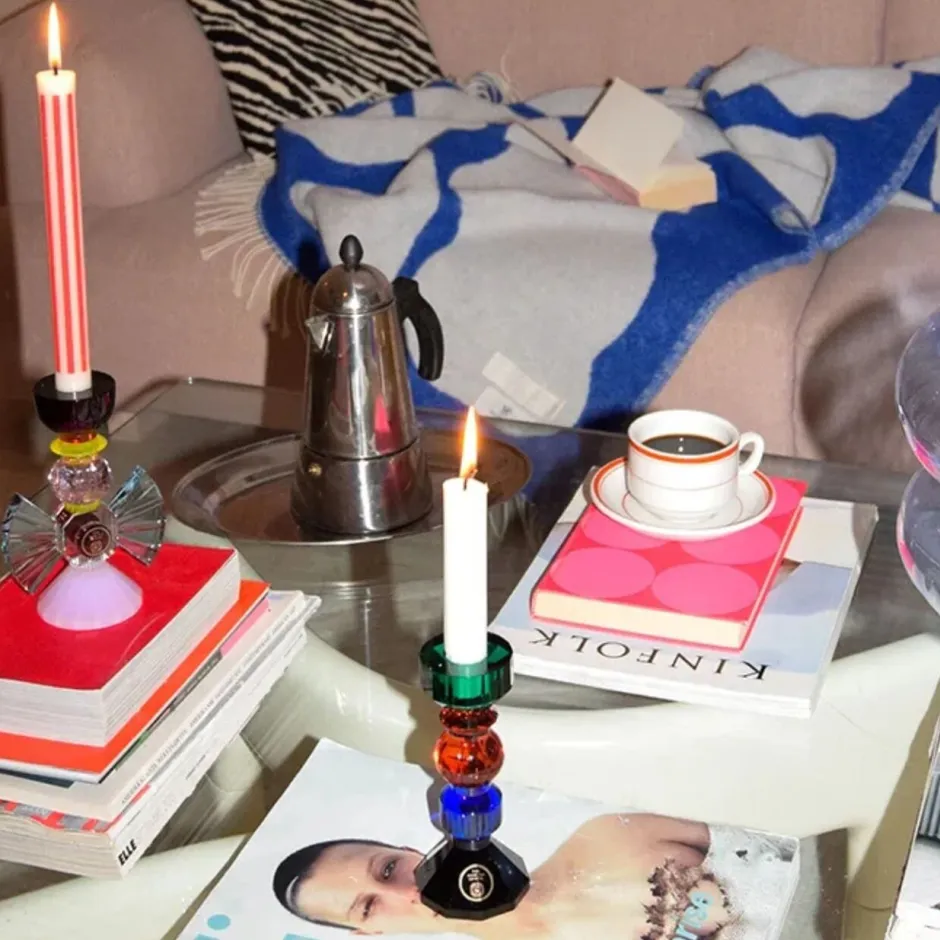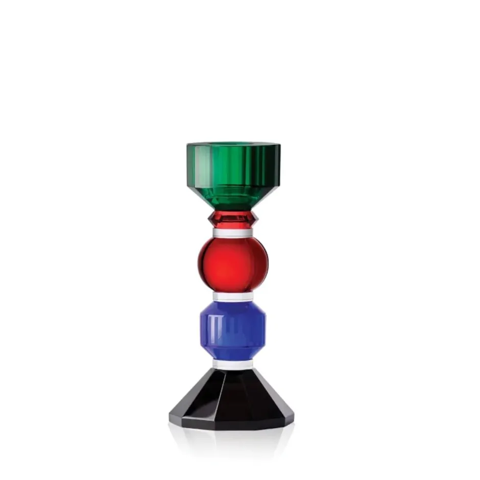 Avec sa base en cristal brun foncé qui fonde son design, le bougeoir Aya joue avec les contrastes audacieux. Des éléments en cristal vert émeraude, bleu saphir et onyx s’associent pour créer une composition géométrique nette qui capte et réfracte magnifiquement la lumière. Pièce riche et raffinée, elle apporte profondeur et sophistication à tout espace.