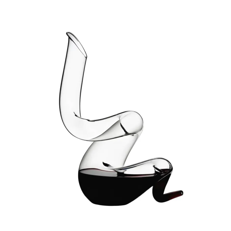 Imaginé par Maximilian J. Riedel lors de ses voyages à travers les Amériques, ce modèle remarquable conjugue finesse du cristal et virtuosité artisanale. Sa silhouette torsadée, culminant à 35 cm de hauteur, attire immédiatement l’œil et devient un véritable centre de table au service de vos plus belles bouteilles.