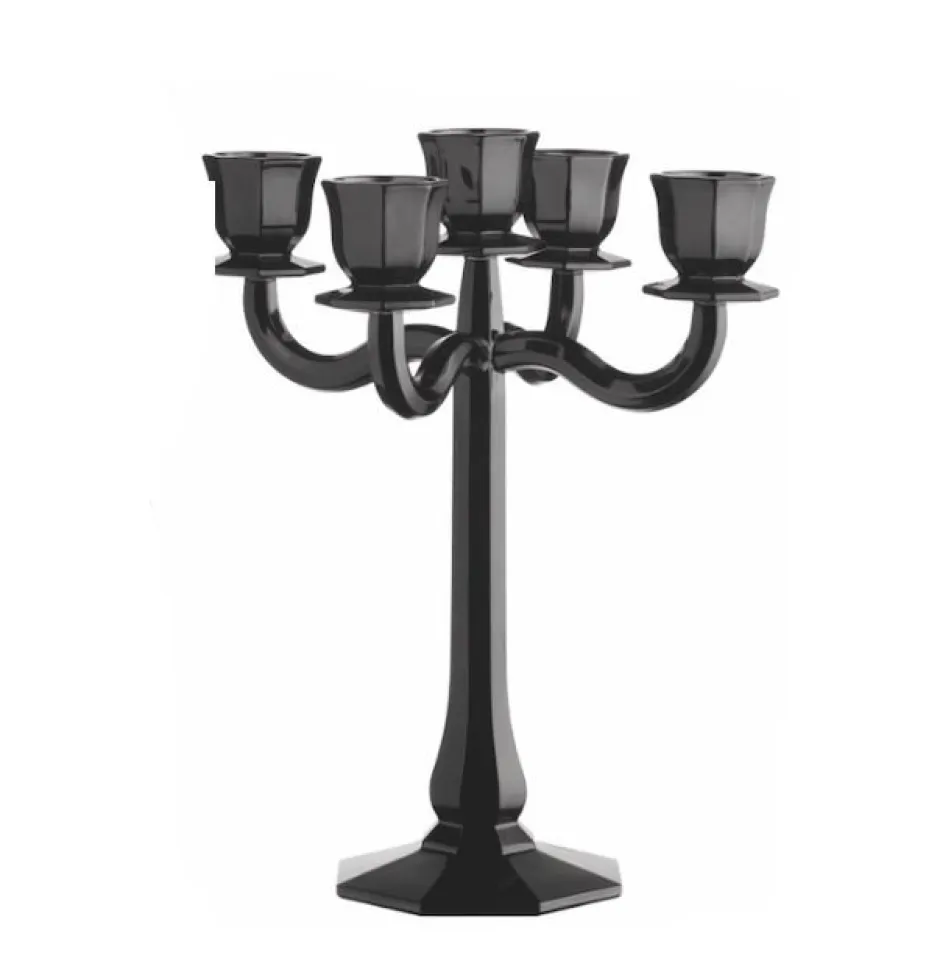 Retour au vintage avec ce superbe chandelier en cristal noir à 5 branches. L’élément parfait pour illuminer de 5 bougies votre table. Son pied octogonale lui assure un forte stabilité. De quoi éblouir vos convives avec cette pièce centrale.