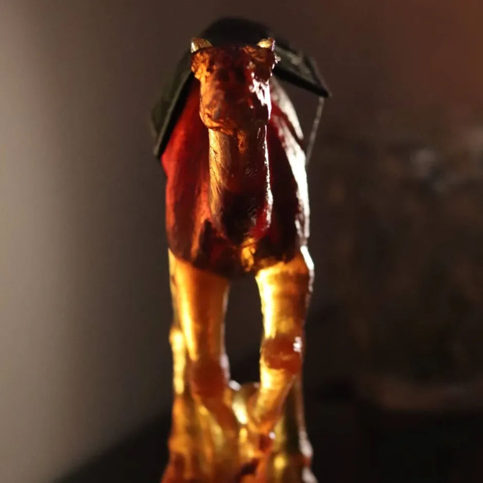 Cette œuvre des Ateliers Daum joint le savoir-faire de la cristallerie à la tradition de la course de Dromadaire chère aux pays du Moyen Orient.