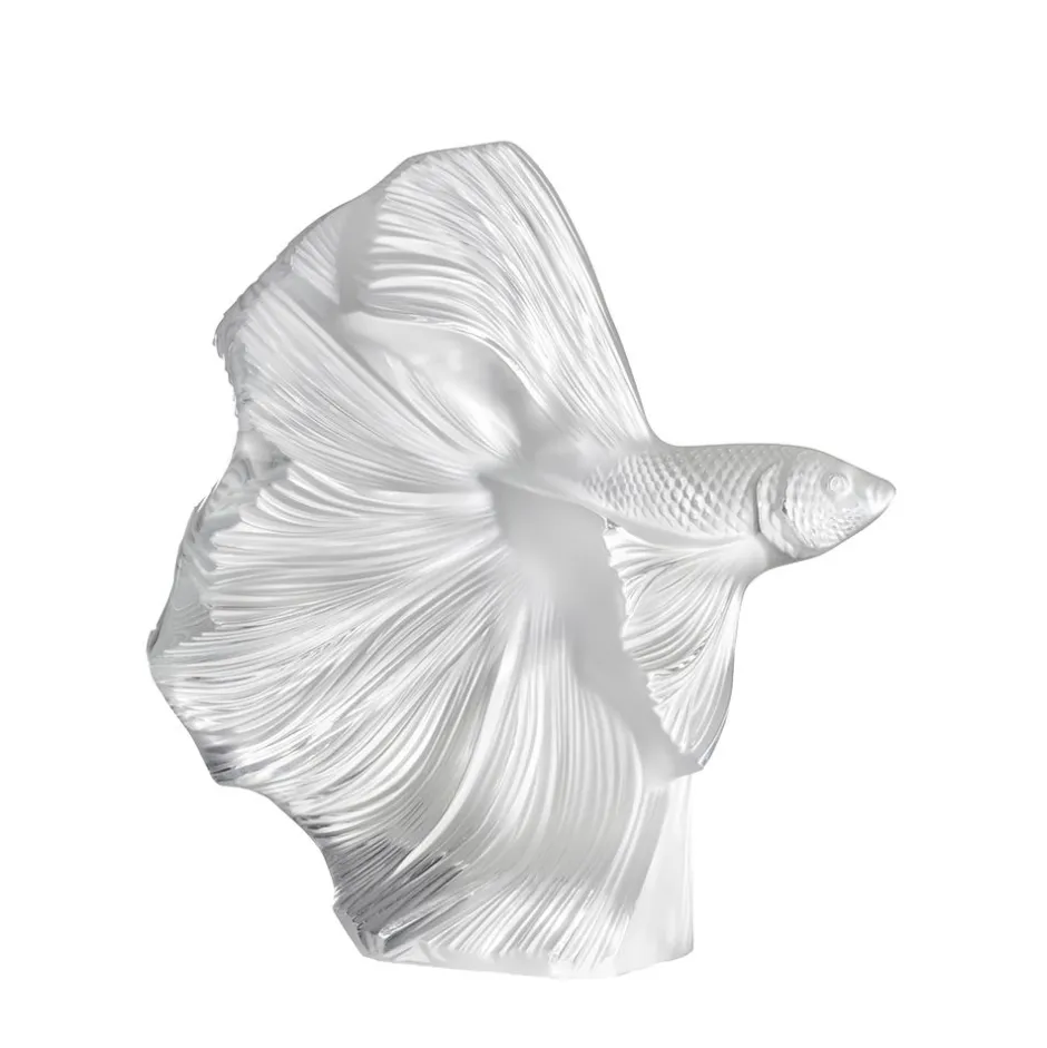 La nouvelle collection aquatique Lalique s’inspire de la faune aquatique à travers de somptueux poissons combattants, aux reflets et transparences inédits. Semblables à des voiles colorés, leurs amples nageoires ondulent et s’entremêlent dans un spectaculaire ballet aquatique.