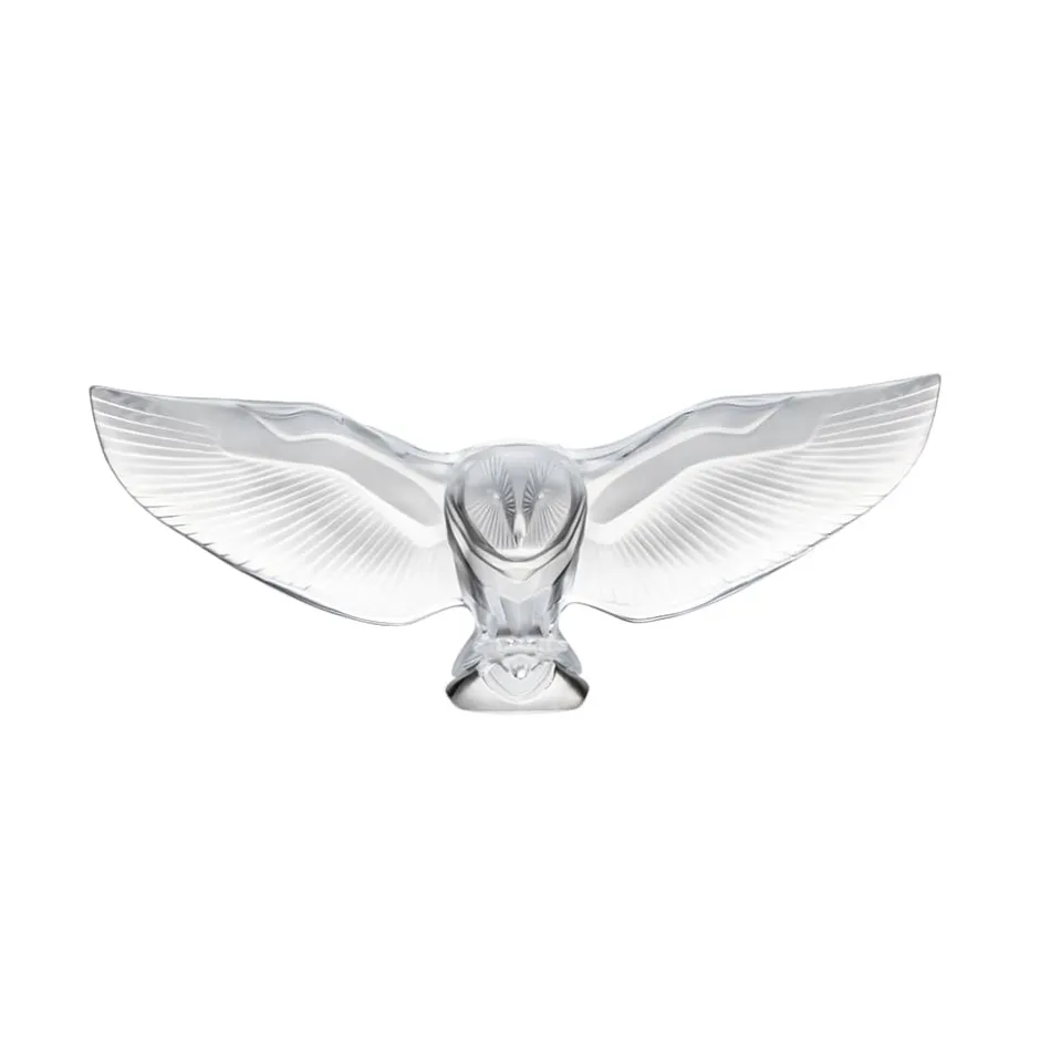 C’est le moment crucial avant l’attaque que Lalique a piégé dans le cristal. Les serres grandes ouvertes, la chouette effraie fend l’air. En vol, ce rapace est si silencieux que ses proies se laissent facilement prendre.