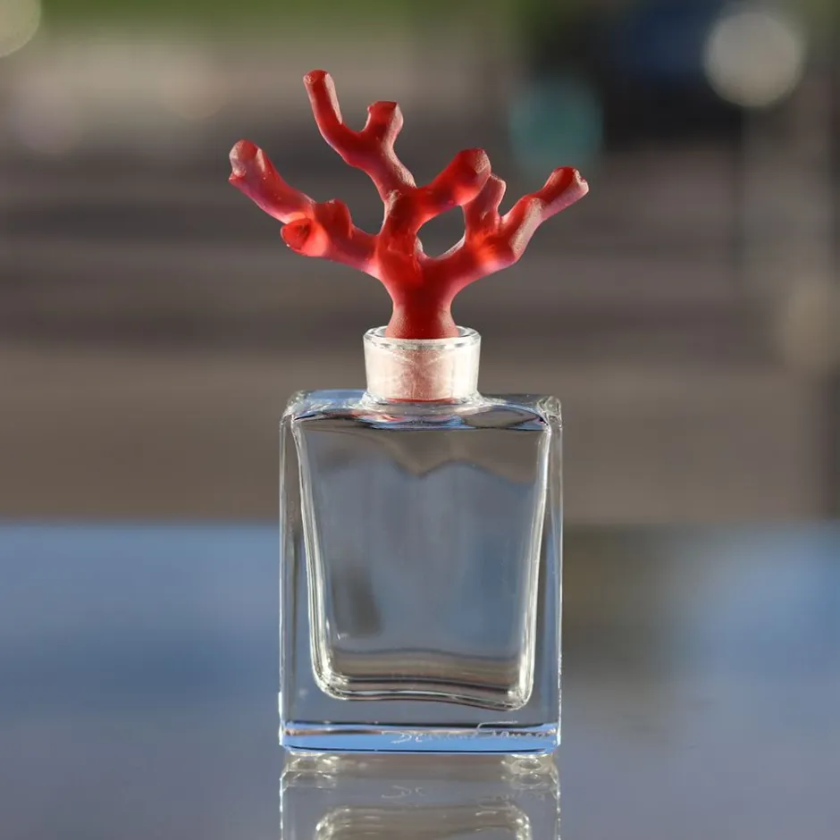 Nouvelle collection 2016 Daum, Flacon coraux signé Daum France. De la rencontre du musée océanique de Monaco et de la Maison Daum, est née la collection Coraux. Bouchonnage à l’émeri.