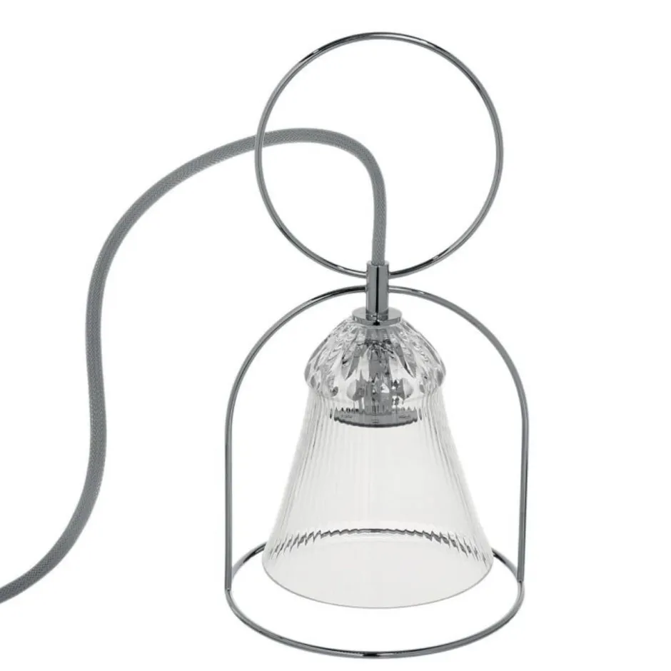 En 2011, Godefroy de Virieu et Stefania di Petrillo tirent inspiration d’un verre de la collection Apollo. Jouant avec sa paraison, ils la renversent à la manière d’une cloche éclairante, la dotant d’un anneau en acier chromé de dimension similaire. C’est ainsi que naissent les premiers luminaires de cette collection.