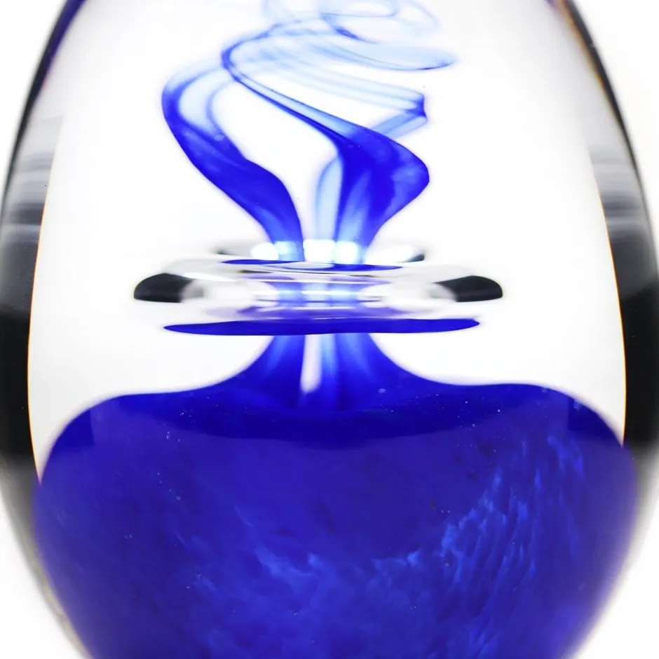 Le grand classique de la sulfure remis au goût du jour. Parfaitement symétrique, cette sulfure renferme en son coeur un bleu nuit profond. Référence aux fonds marins, le verrier capte l’instant présent, tel une pierre tombent au fond de l’océan, laissant alors s’exprimer une couleur subtile, un véritable tableau poétique.