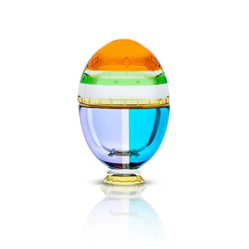 Découvrez une fantaisie endiablée autour des œufs ! Inspirés des festivités de Pâques, les Œufs Fantasia allient espièglerie et élégance. Ces bonbonnières en cristal sont conçues pour protéger vos plus précieux trésors. L’Œuf Fantasia est composé de deux pièces délicatement imbriquées, s’élevant gracieusement sur une base en cristal. Son design captivant allie couleurs, finitions soignées et formes sculptées à la main, dissimulant un symbolisme magique. Un objet unique, empreint de magie et d’opulence. Disponible en trois tailles, il vous invite à créer des combinaisons originales et merveilleuses qui sublimeront votre espace.