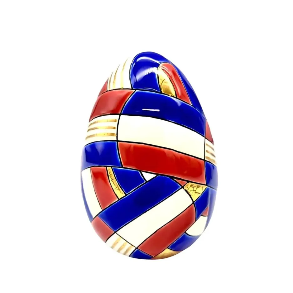 En 2025, La Manufacture des Emaux de Longwy 1798 célèbre à sa manière la République française en drapant de ses couleurs l’Œuf « 14 juillet ».