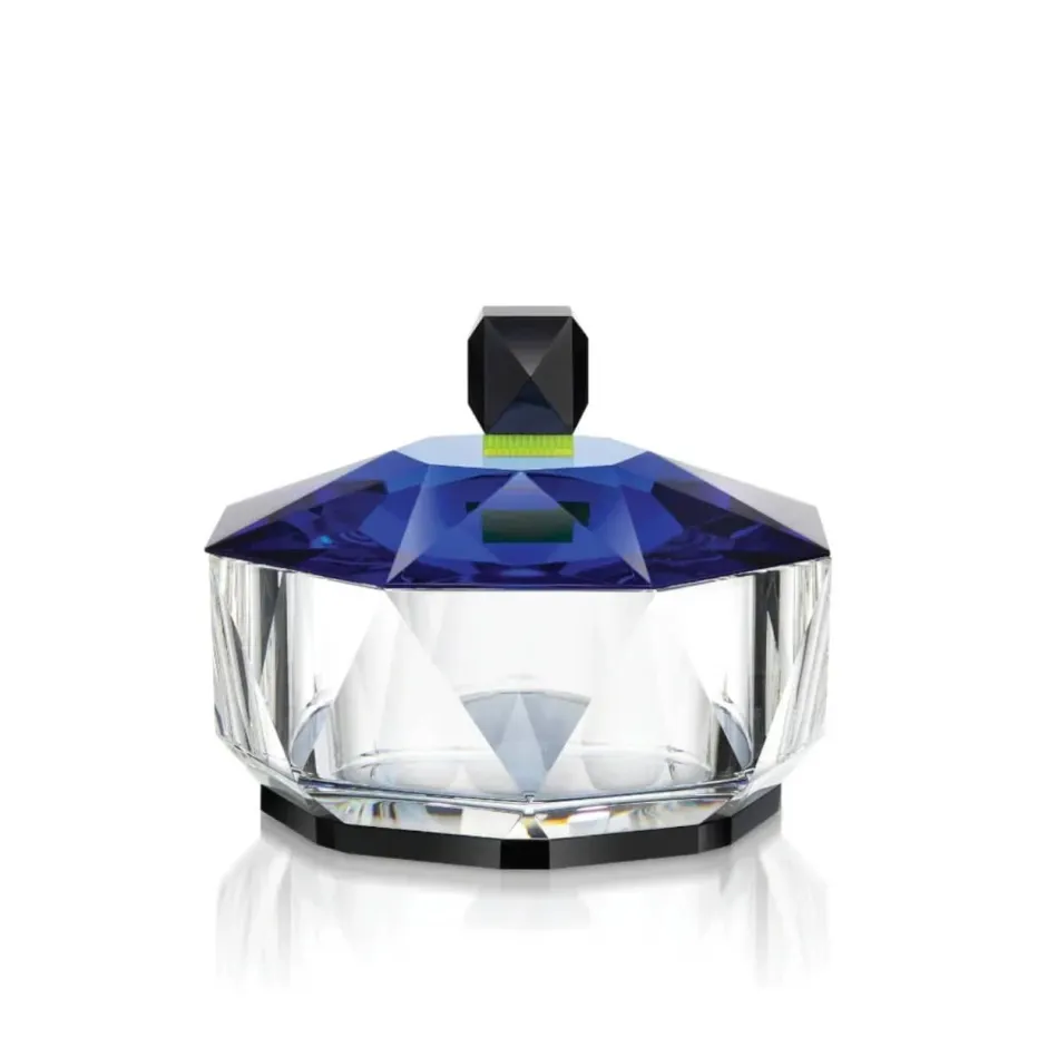 Ce pot à couvercle aux couleurs opulentes est fabriqué en cristal et doté d’un couvercle octogonal. Il égayera n’importe quel espace grâce à sa combinaison de couleurs puissantes. Idéalement placé sur une coiffeuse, un bureau ou une table, ce vase peut accueillir bijoux, clés ou autres petits bibelots. Vous pouvez également l’associer aux autres bonbonnières somptueuses de Reflections Copenhagen ou le poser sur l’un de nos plateaux irisés.
