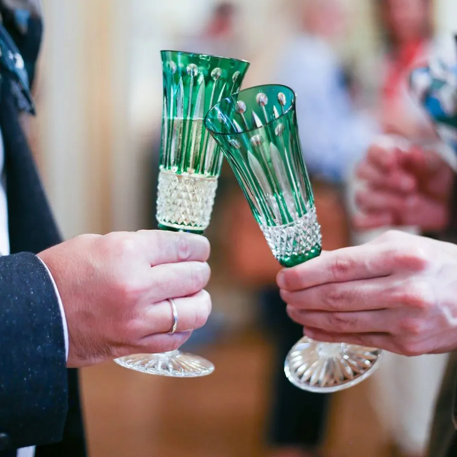 - Flûte en cristal couleur, signée Saint-Louis
