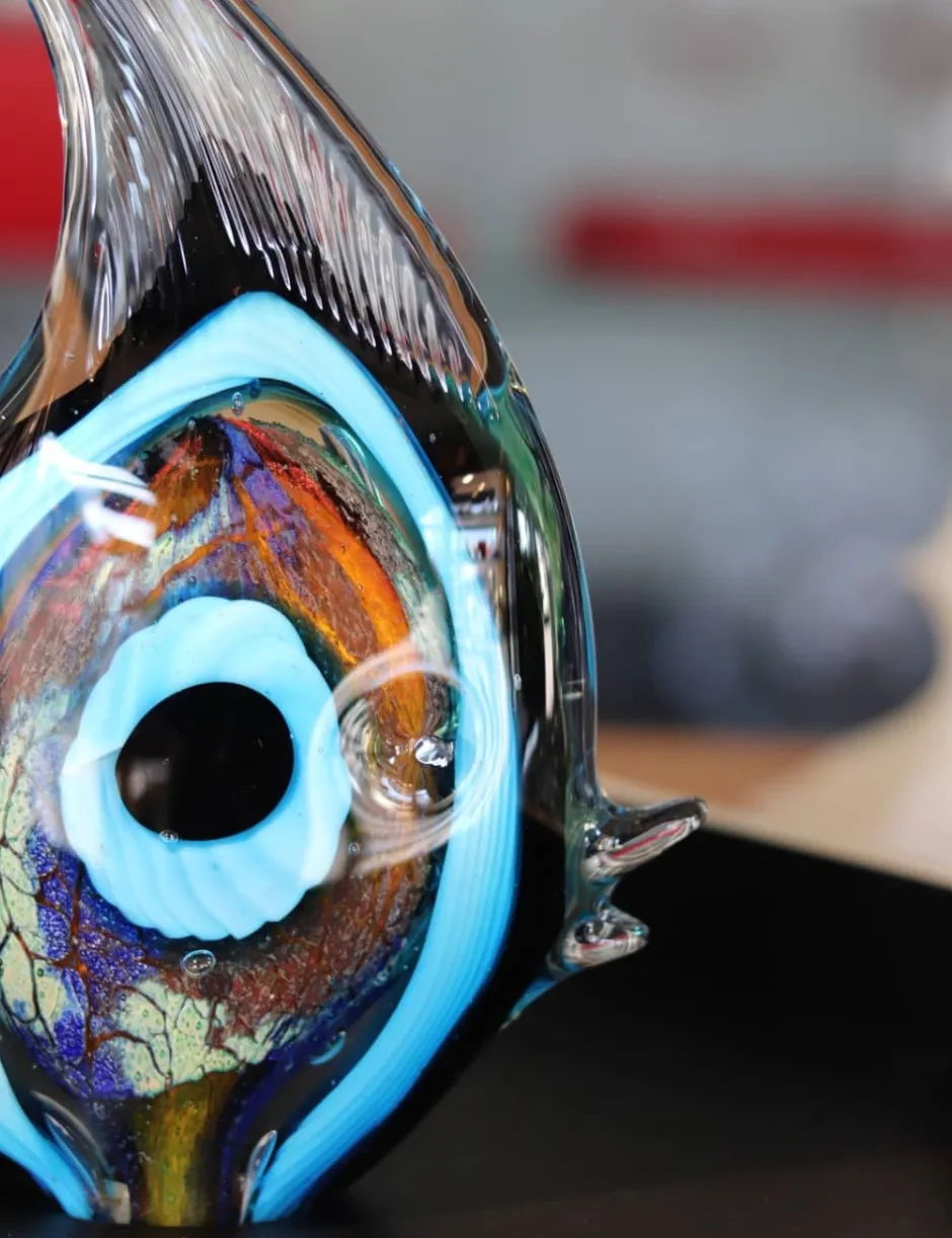 Né des flots et du feu, Œil de Neptune incarne la puissance tranquille des abysses. Son regard iridescent semble veiller sur les mystères marins, entre éclats nacrés et transparence cristalline. Une sculpture fascinante, où le savoir-faire verrier révèle l’âme des océans.