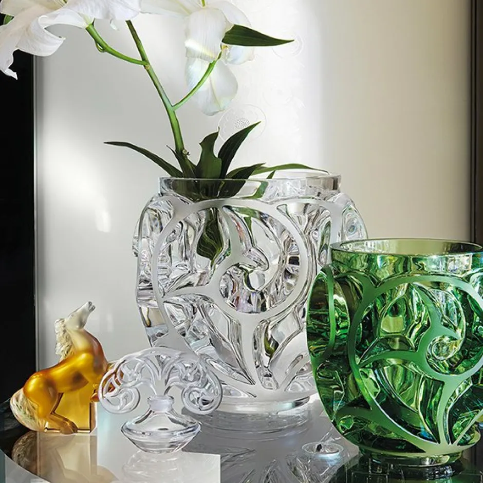 Tourbillon est inspiré par l’éclosion d’une fougère, la nature étant très présente dans l’œuvre de René Lalique. Sa structure unique représentative du mouvement Art nouveau capte la lumière, pour ensuite la diffuser à travers chaque angle. Au sommet de son art, c’est en 1926 que naît ce vase, une œuvre intemporelle laissant une grande liberté d’interprétation.