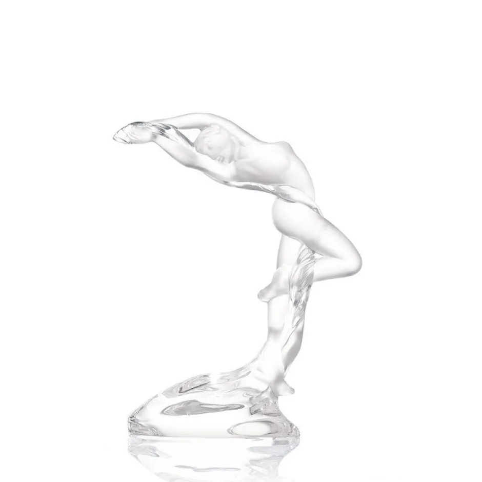 Courant et élancé, l’acrobate semble prendre vie à travers le cristal. Sa légèreté et son sens de l’équilibre défient les lois de la gravité. Tout comme le corps d’un danseur se crée par le mouvement, le cristal Lalique prend vie par le geste artistique, celui de la main humaine, qui transmet la force immatérielle par la création.