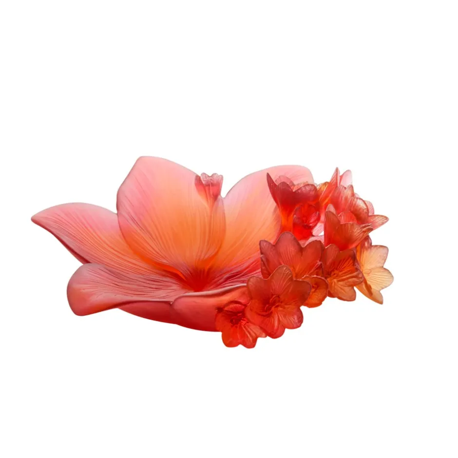 Poésie enchanteresse, la coupe Safran nous émerveille par la précision de ses fleurs sculptées dans la pâte de cristal. Sa couleur ambré orangé typique du safran exprime le savoir-faire de la Maison tant dans la création que le modelage et la réalisation de somptueuses pièces en cristal par la technique de la cire perdue.
