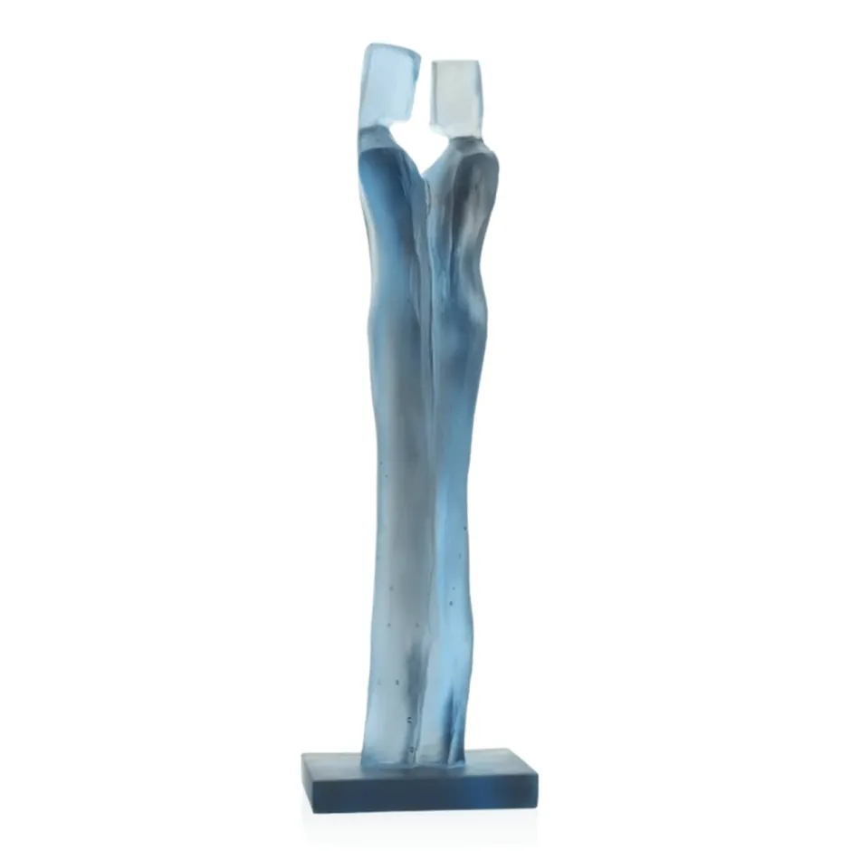 L’œuvre « Evidence » de Laurence Bonnel, un artiste profondément engagé dans l’exploration des relations humaines, est une réflexion poignante sur l’interaction entre l’homme, la solitude, les attentes et les perspectives. Cette sculpture représente un couple, deux figures se faisant face, capturées dans un instant d’intimité et d’échange silencieux. Le mélange de bleu et de gris dans la pâte de cristal ajoute une dimension envoûtante à l’œuvre, symbolisant à la fois la profondeur des émotions humaines et l’ambiguïté des relations.