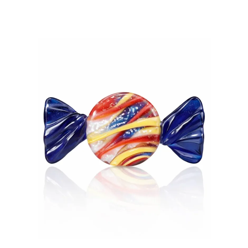 Ce porte-couteau en verre, façonné en forme de bonbon, séduit par ses couleurs lumineuses.