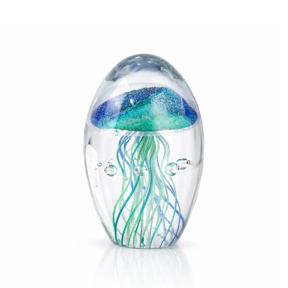 Mystérieuse et envoûtante, Méduse Turquoise semble flotter en apesanteur, suspendue dans l’écrin cristallin des profondeurs marines. Ses filaments graciles ondulent avec poésie, capturant la lumière comme un souffle liquide. Une pièce d’exception, fusion parfaite entre art verrier et beauté abyssale.