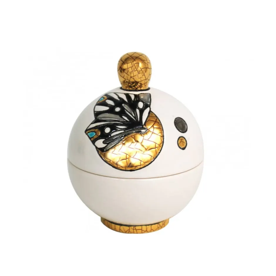 Les papillons noirs et blancs, parés de perles de couleur turquoise jouent la sobriété, simplement posés sur des cercles d’or.