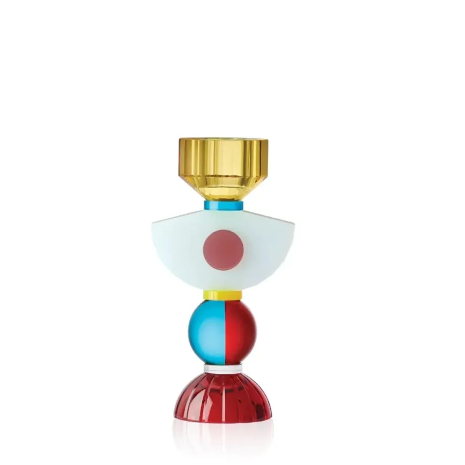Fusion dynamique de couleurs et de savoir-faire artisanal, le bougeoir India est conçu pour captiver. Sa base rouge rubis profond soutient un arrangement ludique de sphères bleu ciel et orange, qui se prolonge par une touche opale lumineuse et un bougeoir ambré. Cette pièce sculpturale apporte mouvement et dynamisme, créant un point focal saisissant dans tout intérieur.