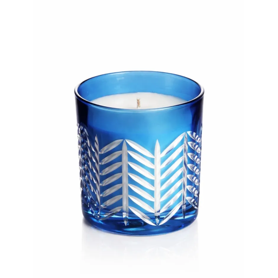 Présentée dans un écrin de cristal bleu aux lignes inspirées des forêts de conifères, elle sublime la lumière vacillante de la flamme. Véritable hommage aux longues soirées nordiques, cette création s’offre comme un cadeau raffiné, empreint de poésie et de tradition.