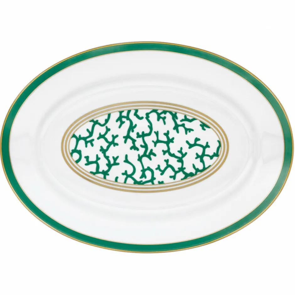 Alliez élégance intemporelle et design audacieux avec ce plat ovale en porcelaine fine de Limoges. Avec son décor central en forme d’ovale habillé du motif corallien, souligné d’un double filet doré, ce plat incarne l’allure sophistiquée de la collection Cristobal. Parfait pour sublimer viandes, poissons ou légumes rôtis, il deviendra la pièce maîtresse de vos tables raffinées.