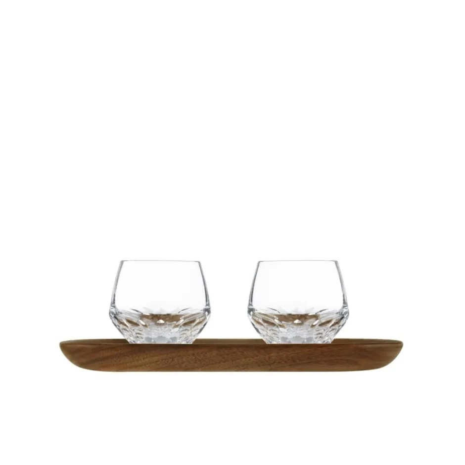 Découvrez le coffret de 2 gobelets à café court en cristal, accompagné d’un plateau en bois pour la dégustation du café. À offrir ou à s’offrir.