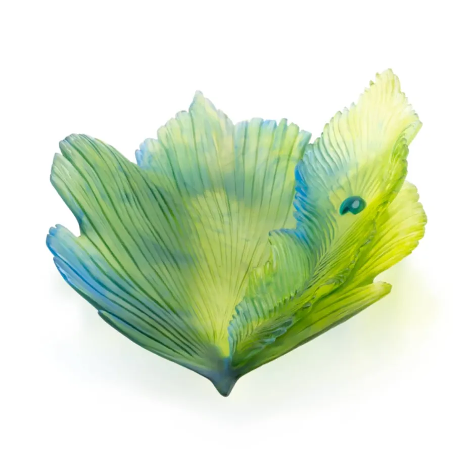 Pour célébrer les 100 ans du lancement de la collection Plume de Paon (présentée en 1919), la manufacture a interprété la beauté du plumage délicat du majestueux paon. Les ateliers Daum imaginent une collection tout en finesse qui dévoile la fusion parfaite des plumes ocellées et du feuillage luxuriant.