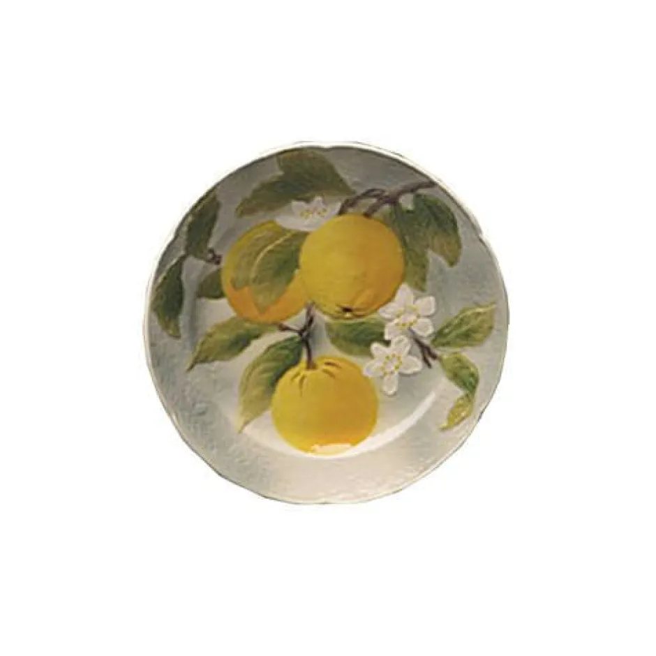 Assiette à dessert orange en Faïence de Barbotine, une assiette aussi bien décorative qu’utilitaire. Également disponible avec le motif abricot, pomme, prune, poire, raisin, orange, framboise.