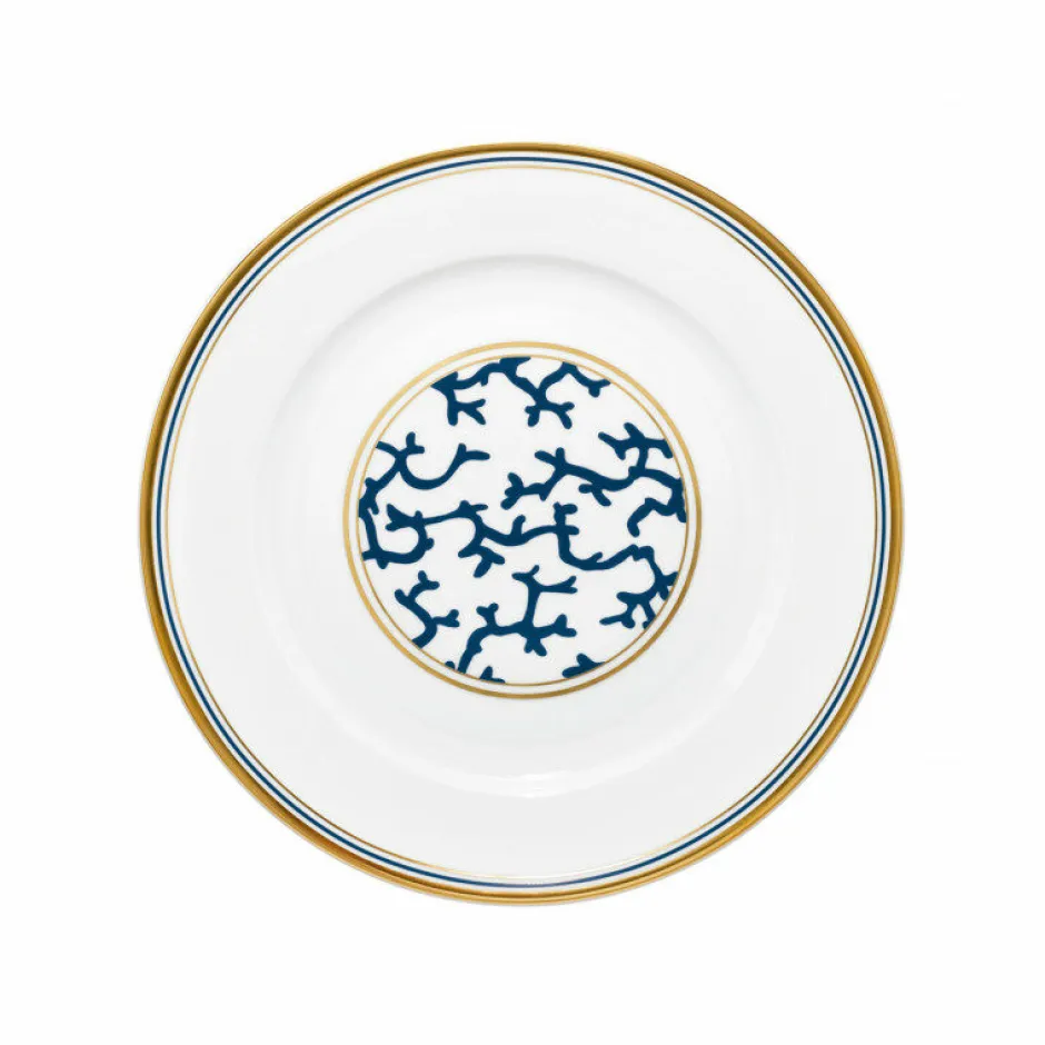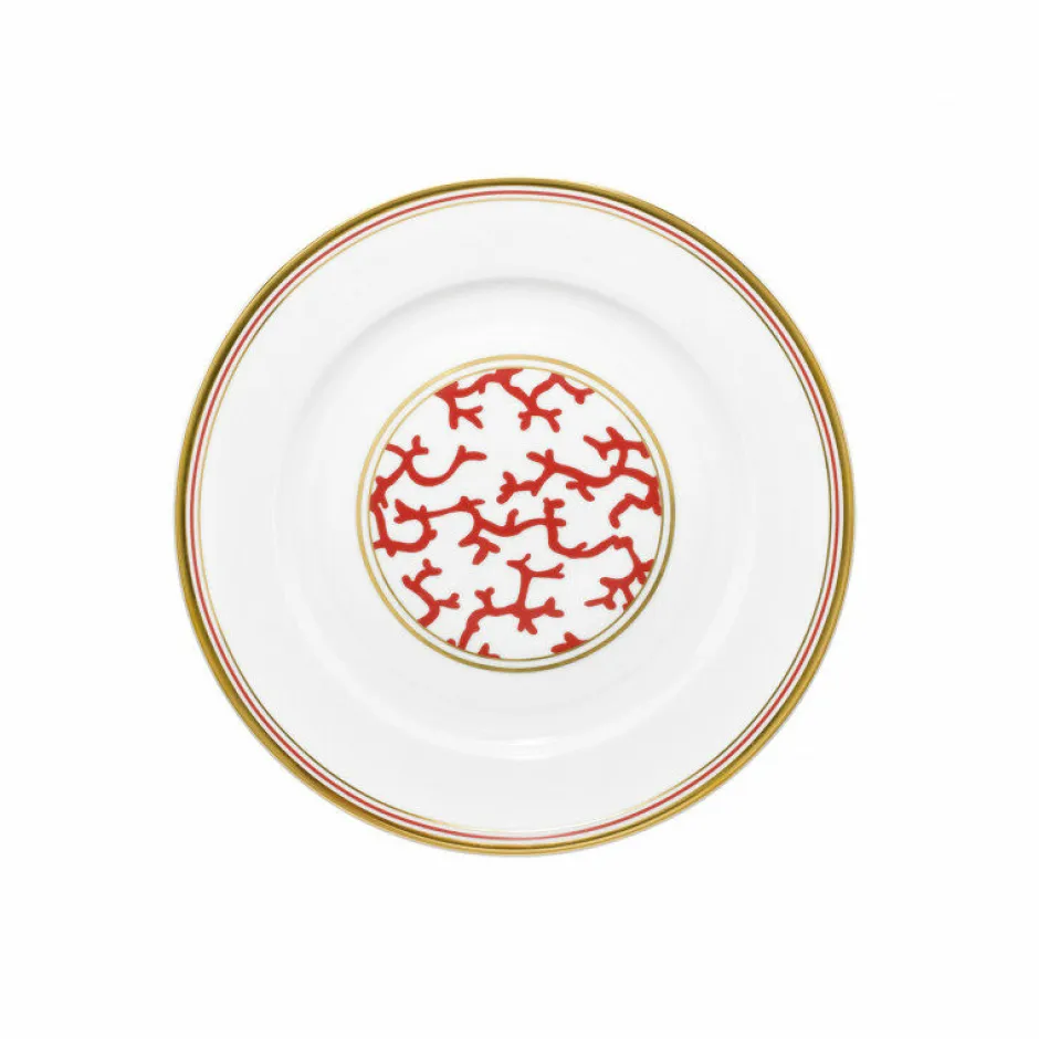 Affichez votre sens du détail avec ce plat rond en porcelaine de Limoges, pièce emblématique de la collection Cristobal. D’un diamètre de 29 cm, il se distingue par son élégante sobriété : au centre, un médaillon de corail sur fond blanc, encadré d’un double filet doré, contraste harmonieusement avec la blancheur de la porcelaine et la finesse du liseré coloré en bordure. Idéal pour présenter mets raffinés, pâtisseries ou entrées à partager.