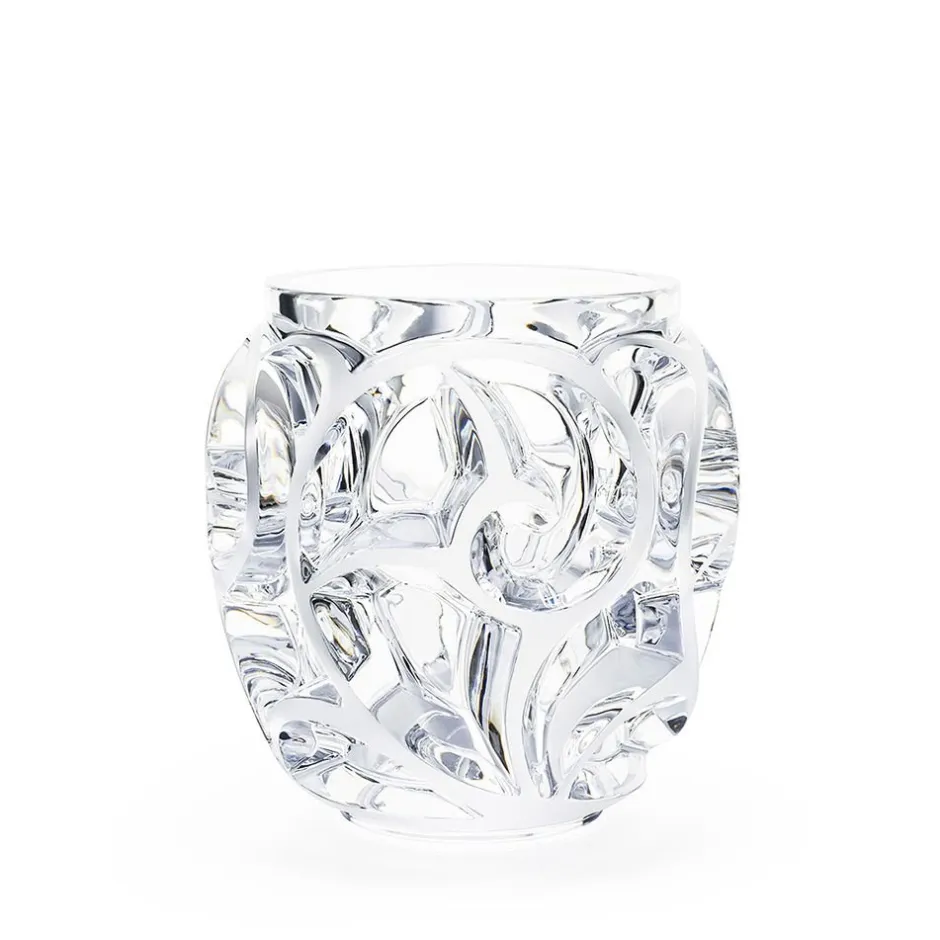 1926 : René Lalique, au faîte de son art, imagine le vase Tourbillons. Inspiré par l’éclosion d’une fougère, plante récurrente dans l’œuvre du célèbre artiste, le motif abstrait laisse une grande liberté d’interprétation. Graphiques et poétiques, les volutes cadencées de lumière sont un vertige de mille feux, absorbant sans effort le regard dans leur profondeur.
