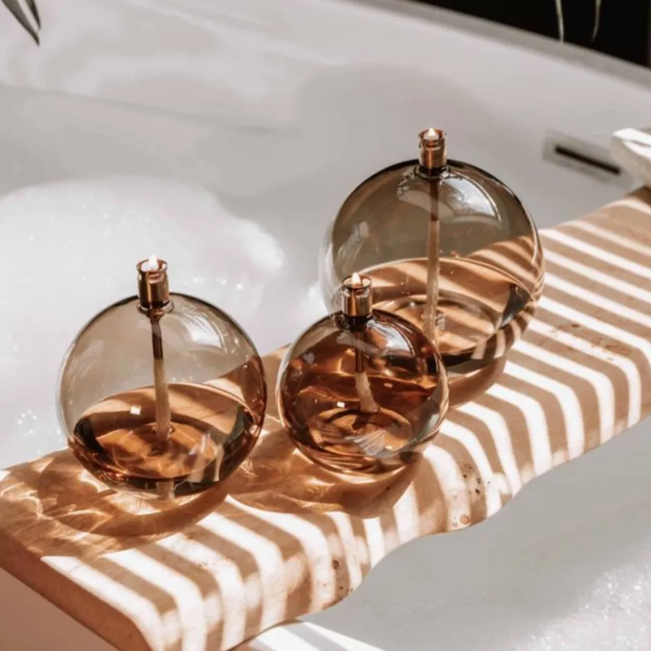 Cette lampe à huile sphérique arbore une couleur champagne séduisante, qui apporte une touche de sophistication et de douceur à votre décoration.
