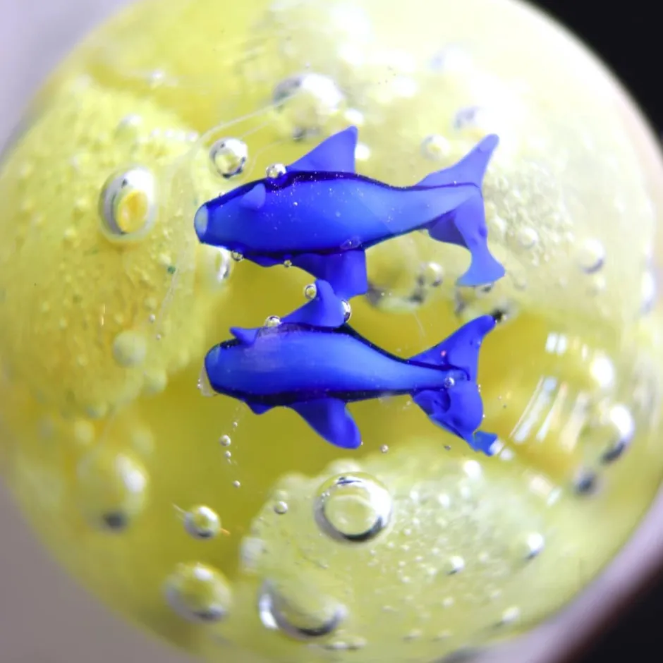 Dans l’éclat solaire de ce jaune intense, deux poissons bleus dansent avec grâce, tels des joyaux aquatiques lovés au cœur d’un récif de cristal.