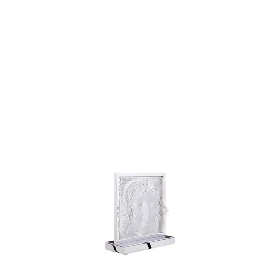 Un motif devenu célèbre. « Masque de Femme » est une collection emblématique de la Maison Lalique. Révélant le visage d’une femme mystérieuse aux traits fins coiffée d’une faune aquatique symbolisant la nymphe Aréthuse, ce motif a été créé par René Lalique en 1935.