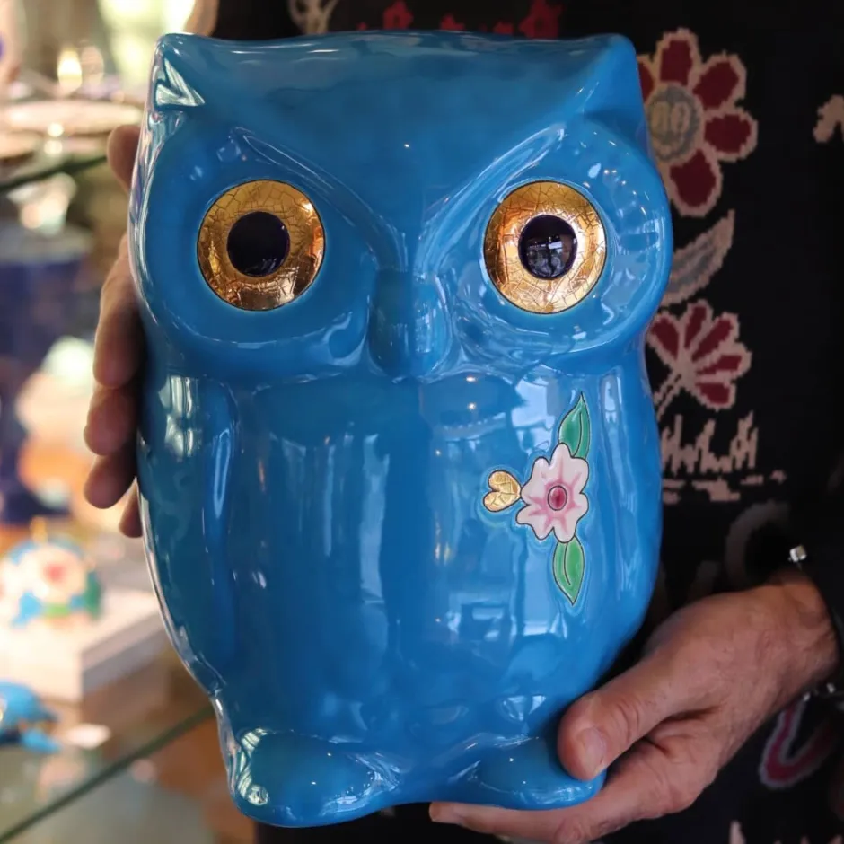 Yeux et petit coeur au-dessus de la fleur peints à l’or 24 carats.
